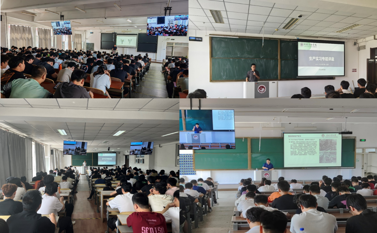 实习期间,学院邀请中国第一汽车集团有限公司工程师杜雨萌;一汽解放汽车有限公司高级工程师陈宇超;一汽-大众汽车有限公司工程师黄培荣;长春泰盟机械制造股份有限公司质量经理谷东明;一汽旗新动力科技公司制造总监袁超;吉林省质量监督检验研究院汽车所所长边增远,长春市恒亮佳睿科技开发有限公司总经理闫红亮;共7位企业专家开展专题讲座,聚焦行业前沿技术与产业变革趋势。专家们结合企业实际案例,分享智能制造、汽车制造工艺、工业互联网等领域的最新动态,引导学生思考技术落地路径与创新方向。